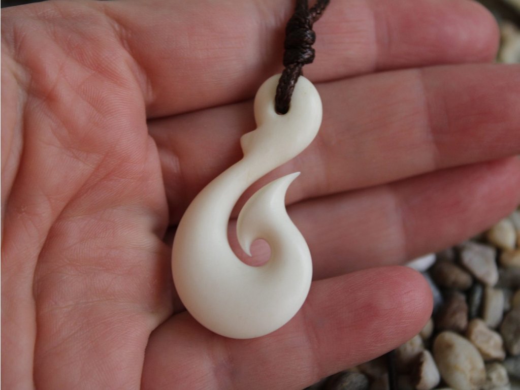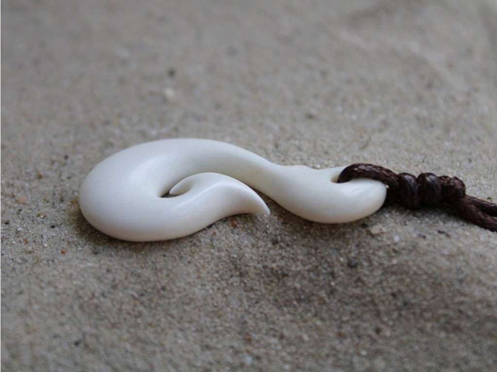 Háček na ryby označuje důležitost rybolovu pro Maory a jejich silný vztah s Tangaroa, bohem moře.